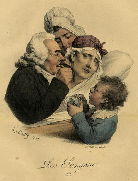 Tecnicamente questa pratica determinava un piccolo salasso, in grado di generare un’ipovolemia (una riduzione del volume di sangue circolante) ed una conseguente riduzione della pressione arteriosa! (Immagine: “Les Sangsues”, litografia di Louis Leopold Boilly, 1827).